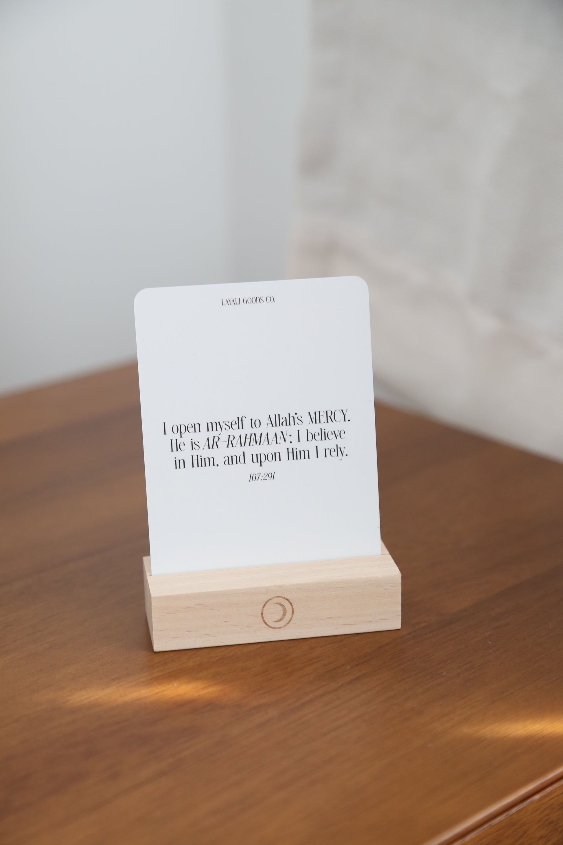 Honestly, I bought these on a whim at a bazaar event. I saw a friend purchasing them and got my own on impulse. But I will say, I didn’t expect them to be so helpful throughout my day (Alhamdulillah). Seeing the meanings of the names plus a positive note about them also helped me start praying to those names, as well. It’s crazy how something so simple that I got just randomly without any expectations has shifted my perspective and mentality (maybe not a massive shift right away but a slow growth and process). Mind you, I’m using these cards alongside this company’s Day by Day journal and some 99 Names flash cards I have, and the combination of the three is what’s really helping. Still, I think if anyone’s looking for something to help elevate their day and Deen, these affirmation cards are a nice addition to the daily routine. Also, the stand is quite nice (hehehe). Whoever decides to buy them, hope they help you even in some small way ◡̈
