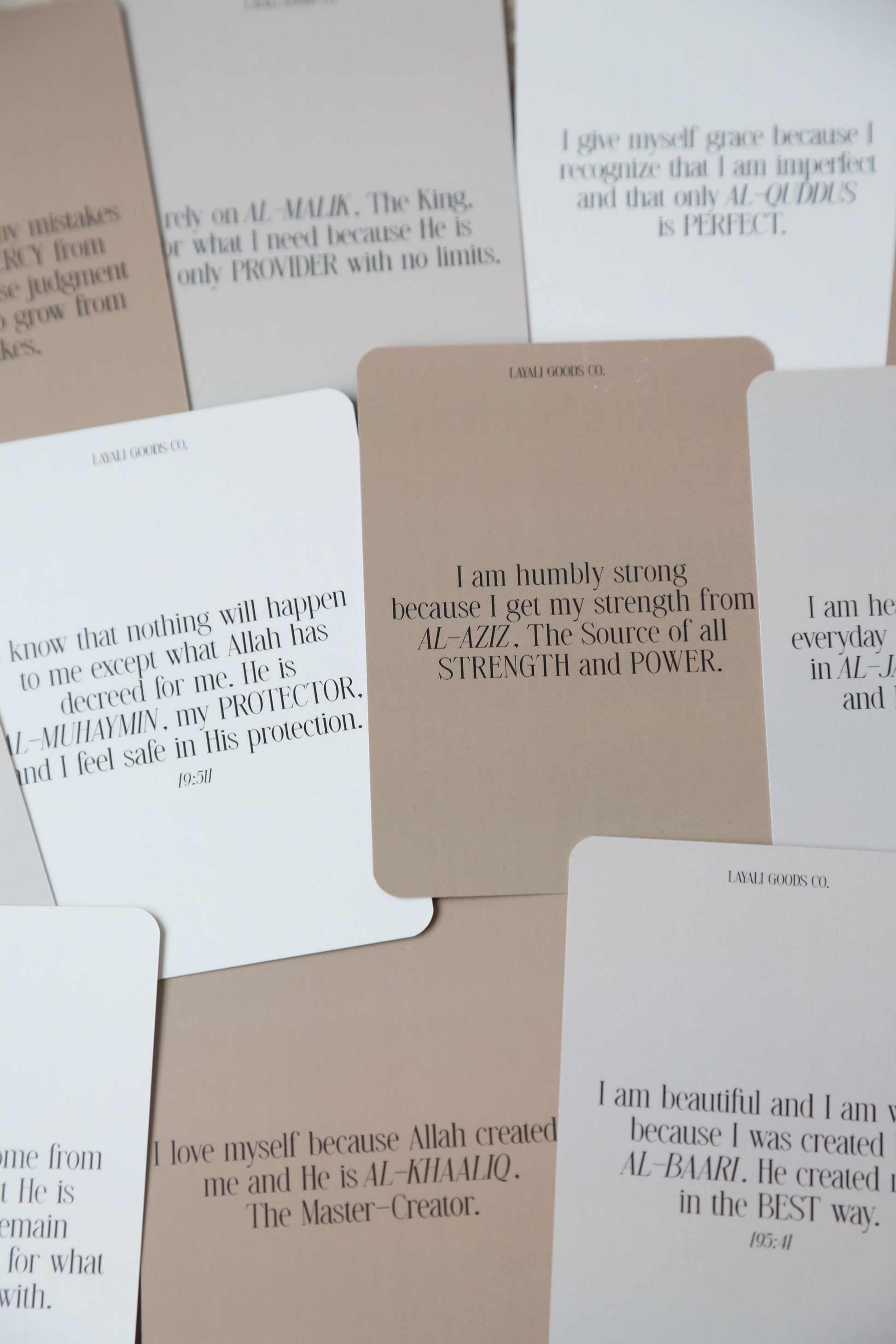 Get closer to Allah and to yourself with the 99 Names of Allah Affirmation Cards and let divine wisdom guide your daily affirmations. Each card reveals a divine name, the meaning and an affirmation inspired by that attribute.